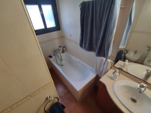 Planta superior: Encontramos un salón/comedor de unos 25 m2 con salida a gran terraza, bonita cocina office equipada con osmosis, un baño completo con bañera y 2 habitaciones dobles. Una de las habitaciones es en Suite con un baño completo con plato de ducha.
