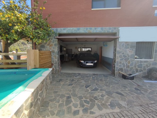 En el exterior, encontramos varias zonas ideales para destinar como huerto en sus diferentes bancales amplios, piscina, trastero, bodega, jardín y varios trasteros. También dispone de un gran depósito de agua de alrededor de 14.000 litros.