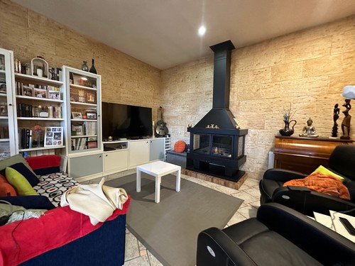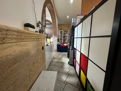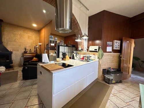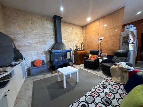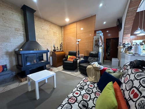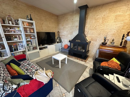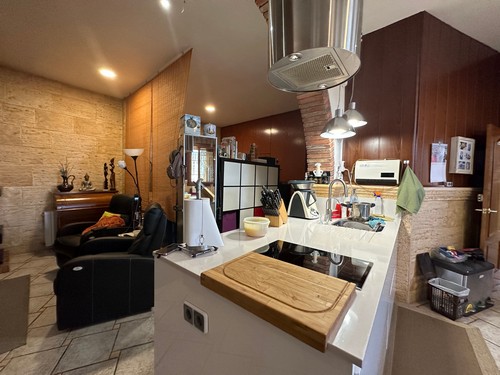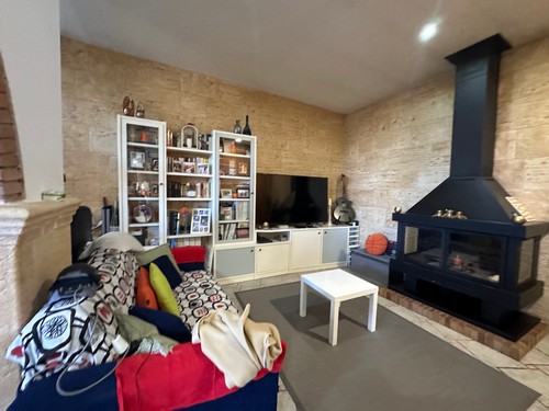 Planta Primera: Subiendo desde la planta del garaje, encontramos esta altura donde encontramos un apartamento de aproximadamente 75-80 m2 destinado actualmente a un apartamento. Este apartamento dispone de un salón/comedor con chimenea y abierto a cocina. En esta altura encontramos un baño completo.