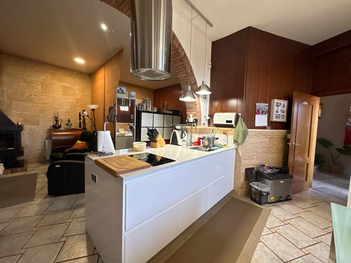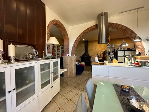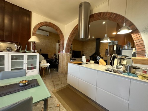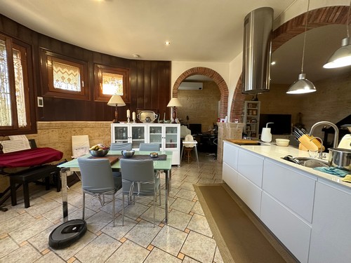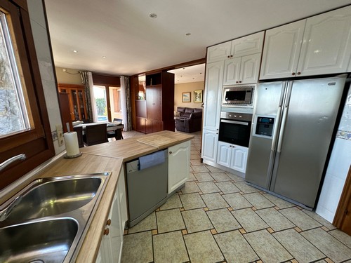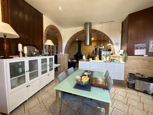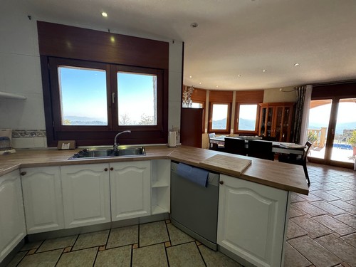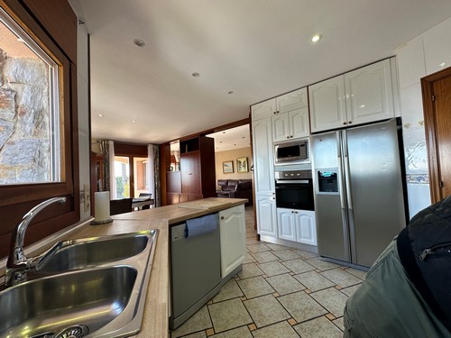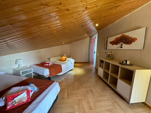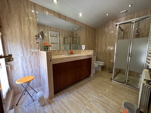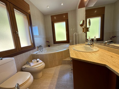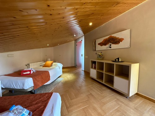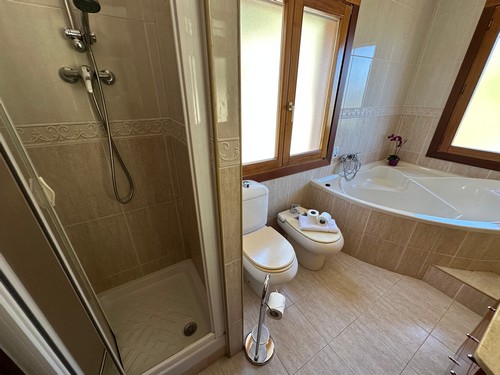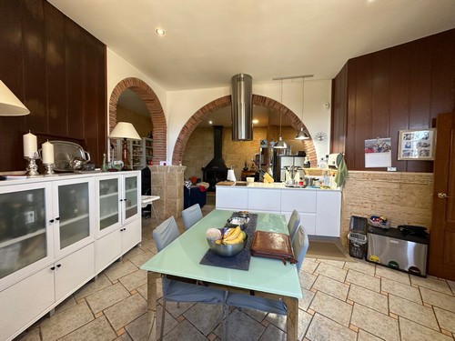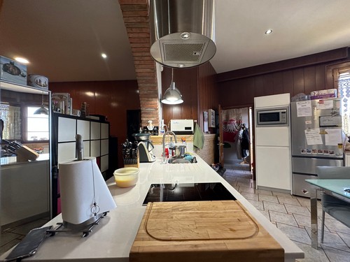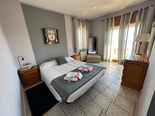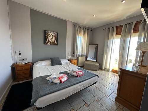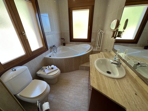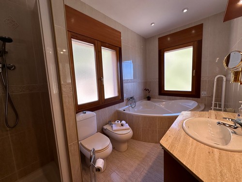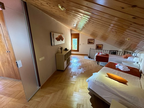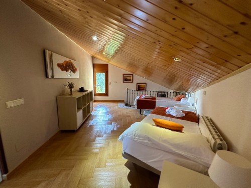 La vivienda está distribuida en 3 alturas más una buhardilla. Dispone de 5 habitaciones dobles, 4 baños y 3 cocina (una de ellas en la zona barbacoa).