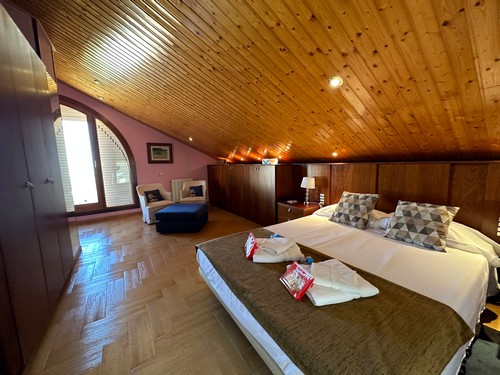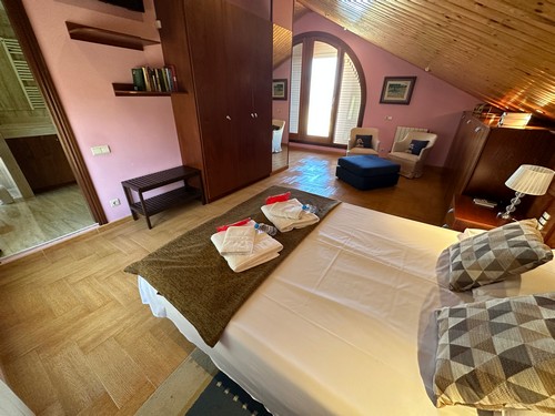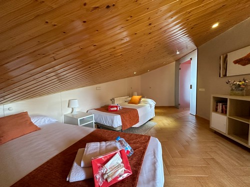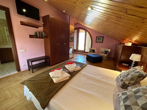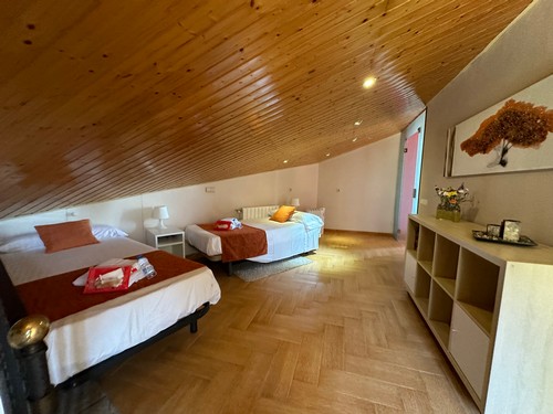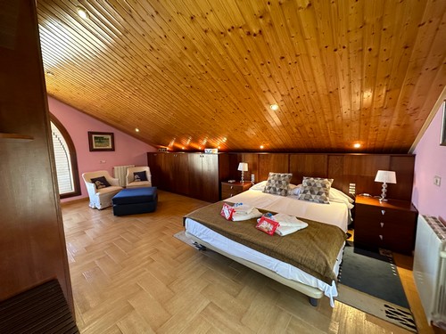 Zona Buhardilla: Encontramos la buhardilla de la vivienda, dispone de techos de madera, una habitación doble con baño en Suite y salida a precioso balcón semicircular que nos da unas vistas fascinantes.