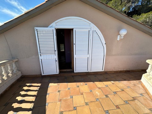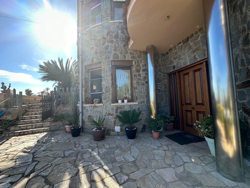 El exterior de la vivienda podemos encontrar zonas ajardinadas muy cuidadas. Desde esta vivienda exclusiva podemos disfrutar de vistas al mar a lo lejos.