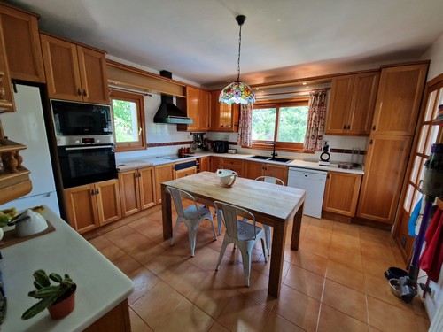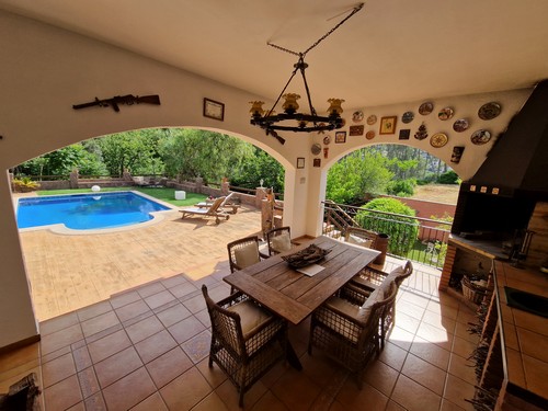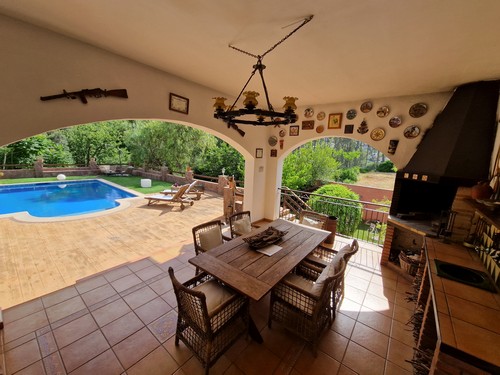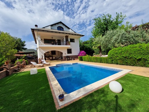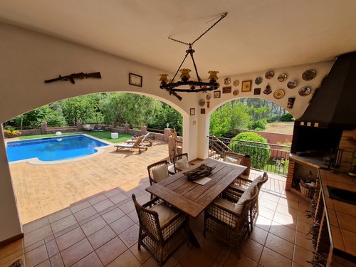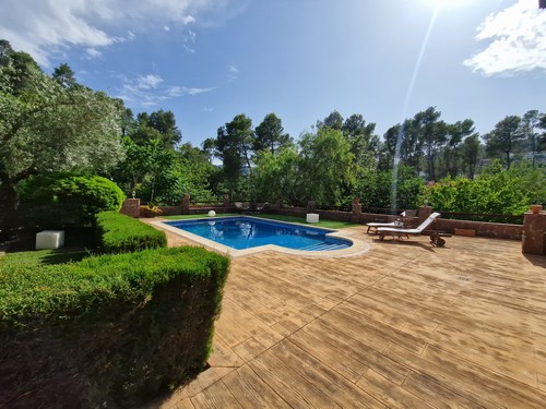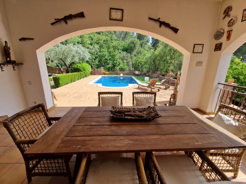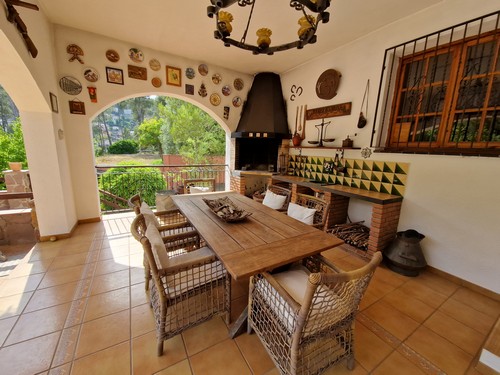 En el exterior encontramos varias terrazas, zonas ajardinadas, zona barbacoa, zonas ideales para destinar como huerto y espectacular piscina. El jardín (muy cuidado) ofrece una maravillosa zona chill out justo al lado de la piscina. También encontramos un precioso porche con vistas directas a la zona de la piscina. Justo en la entrada encontramos un parking cubierto con capacidad para 3 coches adicionales al garaje cubierto que ofrece la vivienda.