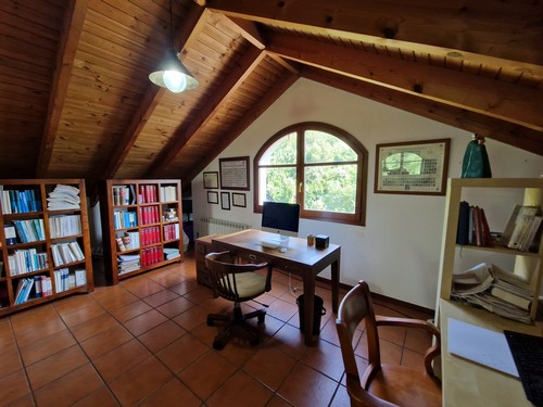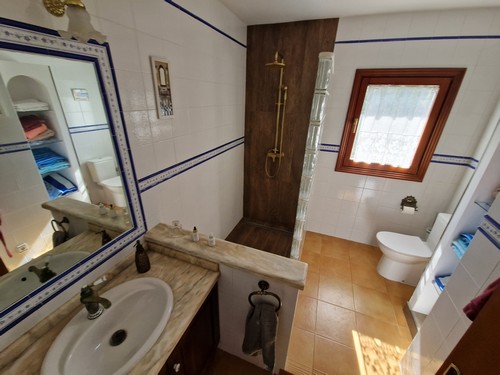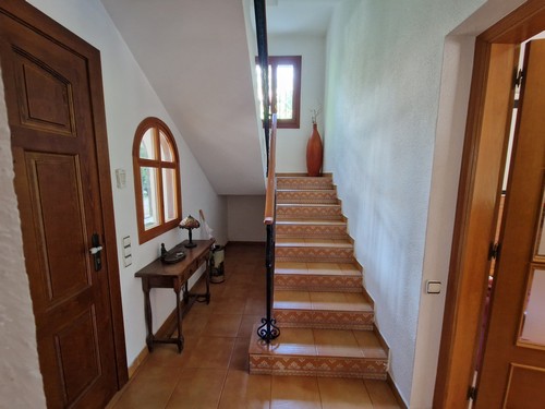 Planta Principal: Encontramos un amplio salón/comedor con chimenea y salida a terraza con preciosas vistas a la zona del jardín y la piscina, gran cocina office totalmente equipada, 3 habitaciones dobles (una de ellas en Suite con baño completo con plato de ducha) y otro baño completo con plato de ducha adicional para dar servicio al resto de habitaciones de esta altura.