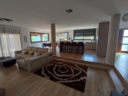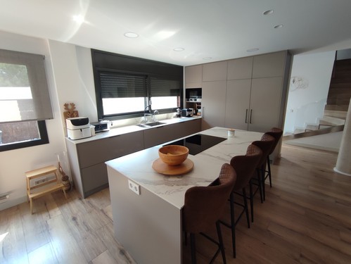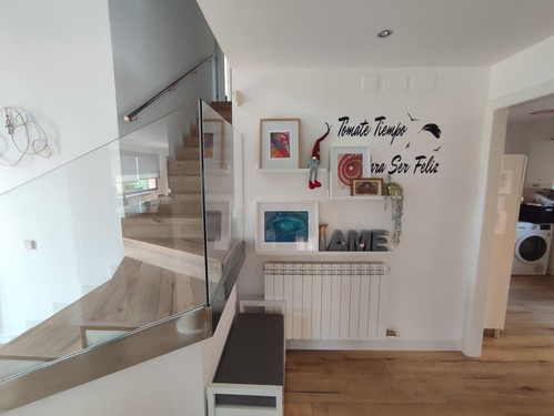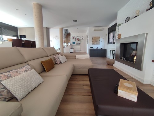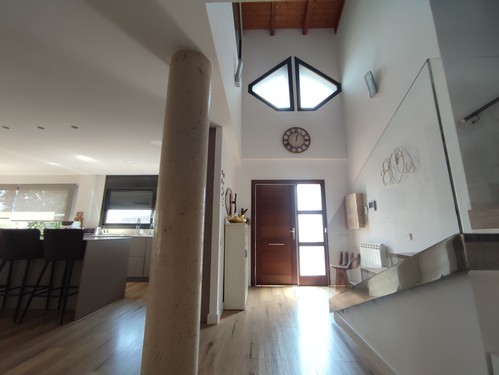 Planta Principal: Encontramos un bonito recibidor que nos da acceso al amplio salón/comedor a doble altura con chimenea y abierto a espectacular y amplia cocina con isla. Desde el salón tenemos acceso a una de las grandes terrazas que tiene la casa. En esta altura también ubicamos un aseo de cortesía y una sala destinada como zona lavadero con acceso directo a la terraza posterior de la vivienda. En esta altura tenemos terraza que rodea toda la planta.