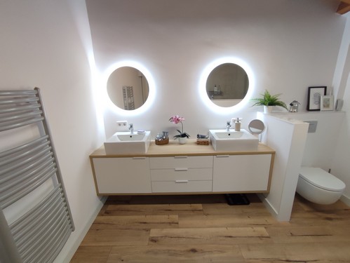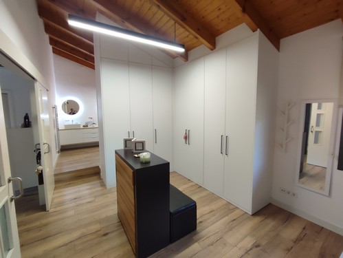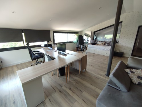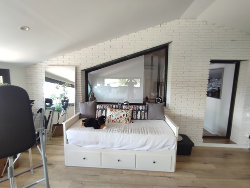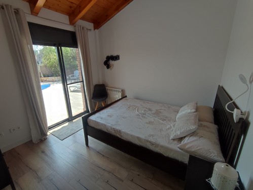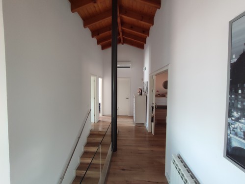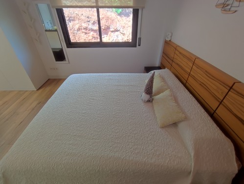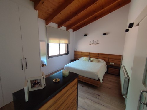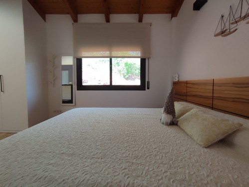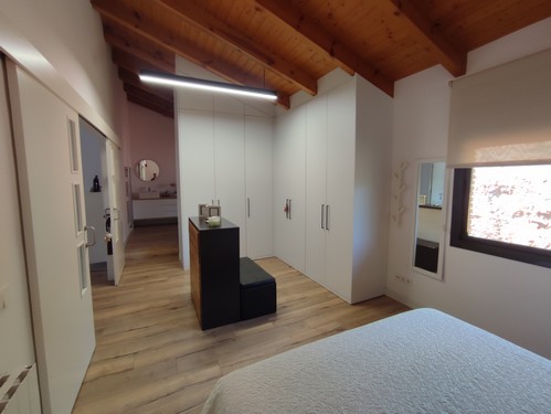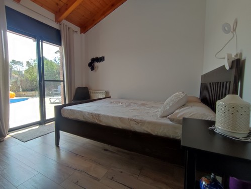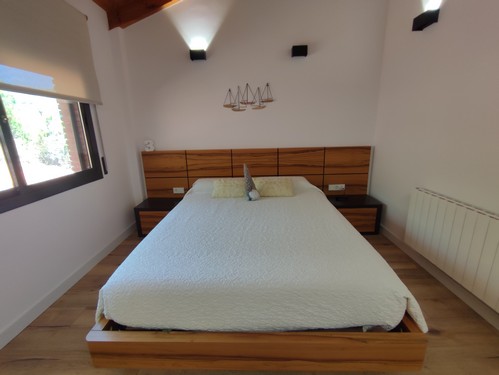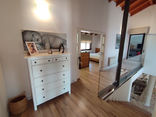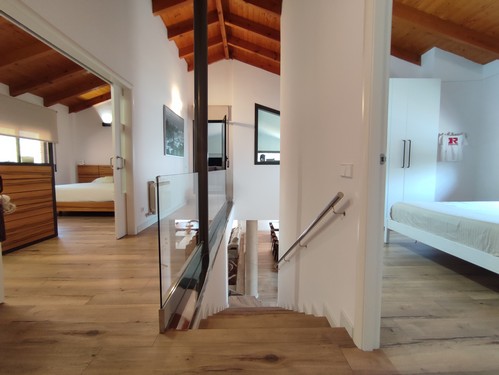 Planta Primera: En esta altura encontramos la zona de noche. Está compuesta por 3 habitaciones dobles (una de ellas en Suite de gran tamaño con gran baño privado y zona destinada a vestidor). Desde una de las otras 2 habitaciones dobles tenemos acceso directo a la zona de la piscina con unas vistas increíbles a las montañas y su naturaleza. En esta misma altura encontramos un baño completo adicional con bañera para dar servicio al resto de habitaciones y una estancia de gran tamaño que actualmente se le da uso a gran despacho/oficina pero que puede usarse como gimnasio, habitación adicional, sala de juegos o cualquier otro tipo de uso.