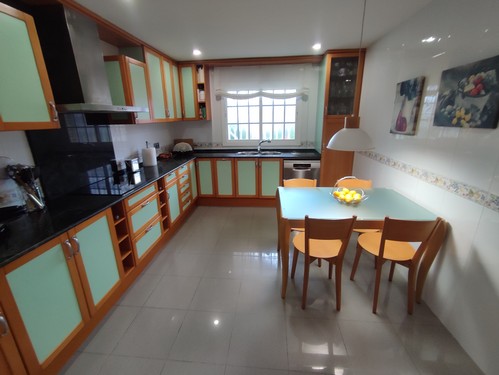 Planta Principal: Encontramos un bonito recibidor que nos da acceso a un amplio salón/comedor con salida a balcón que da a la zona de la piscina, gran cocina completamente equipada, una habitación individual, un baño completo con plato de ducha y acceso directo al garaje con capacidad para 2 vehículos. Desde el garaje tenemos acceso al exterior a la zona de barbacoa.