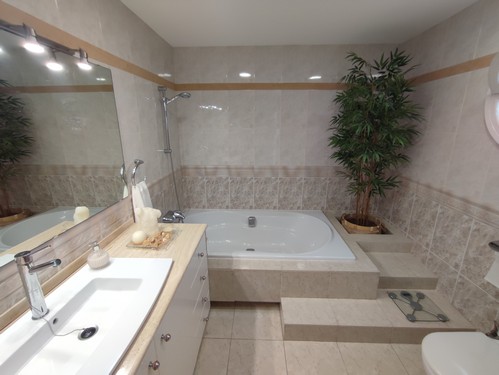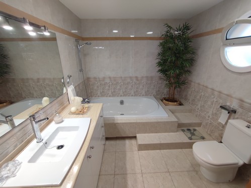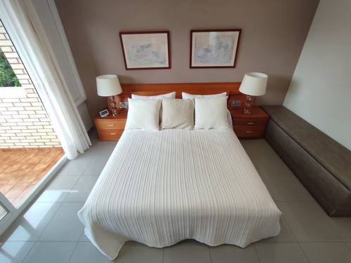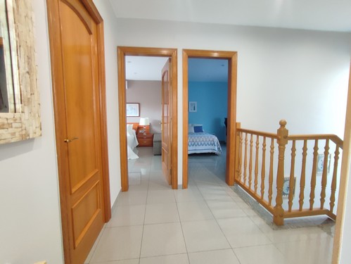 Planta Superior: En esta altura encontramos la zona de noche de la vivienda. Está compuesta por 3 habitaciones (2 dobles, 1 individual) junto a un baño completo con bañera de gran tamaño. Desde la habitación doble principal tenemos acceso a balcón. En esta altura también disponemos de espectacular terraza solárium.