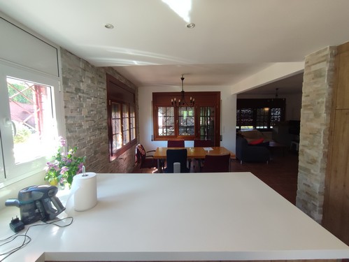 En planta principal encontramos un bonito recibidor que nos da acceso al amplio salón/comedor con chimenea abierto a gran cocina completamente reformada y equipada y salida directa a la zona de la terraza y piscina. En esta misma altura encontramos 1 dormitorio y un baño completo.