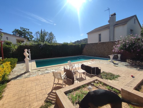 En zona tranquila y rodeada de naturaleza, en Cervelló, encontramos esta magnífica casa con piscina de 251 m2 construidos en el 1983 sobre una parcela de 783 m2 según los datos ofrecidos por el catastro.
