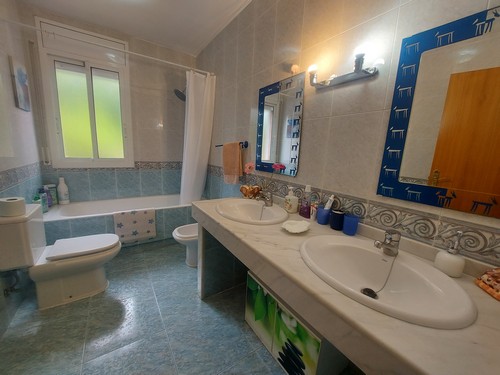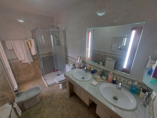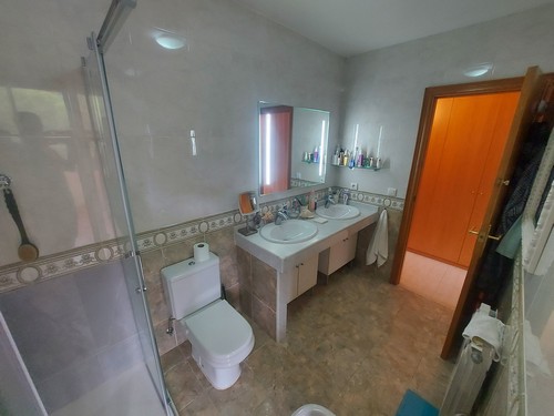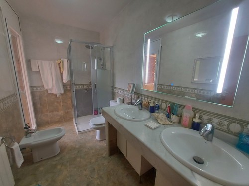 Planta Superior: Encontramos un amplio salón/comedor con chimenea con acceso directo a gran terraza, cocina office de gran tamaño completamente equipada con salida directa al exterior donde encontramos la zona de barbacoa, 4 habitaciones dobles (una de ellas en Suite con su baño completo privado con plato de ducha) y un baño adicional con bañera para dar servicio al resto de habitaciones.