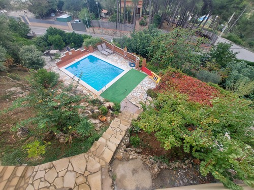 Destaca de esta vivienda la gran parcela con jardín, zona ideal para huerto, varias terrazas y la gran piscina con zona chillout para relajarse con amigos y familia. La vivienda dispone de muchísima luz gracias a su excelente orientación y ofrece unas vistas maravillosas a la montaña.