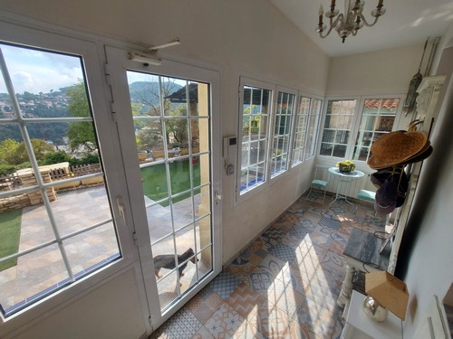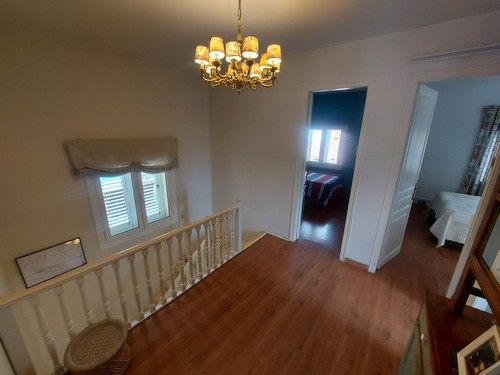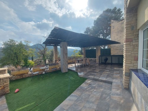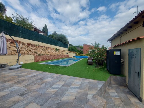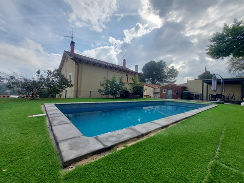 Planta Primera: En esta altura encontramos la zona de noche. Dispone de 4 habitaciones (2 dobles, 2 individuales) y un baño completo con bañera de hidromasaje. Desde una de las habitaciones dobles y desde una de las habitaciones individuales tenemos acceso a una terraza solárium con unas vistas increíbles a Corbera de Llobregat y sus montañas. Una de las habitaciones dobles incluye un vestidor.
