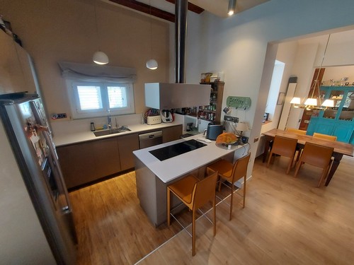 Planta Principal: Encontramos un bonito recibidor que nos da acceso al gran salón/comedor con chimenea abierto con cocina office totalmente equipada con electrodomésticos de muy buena calidad. En esta altura encontramos también un baño completo con plato de ducha.