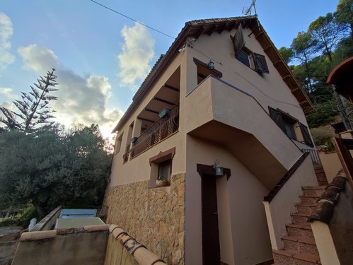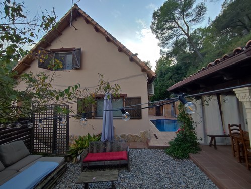 En zona tranquila y rodeada de naturaleza, en Vallirana, encontramos esta magnífica casa con piscina de 276 m2 construidos en el 2006 sobre una parcela de 1050 m2 según los datos ofrecidos por el catastro.