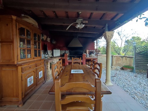 En el exterior encontramos zonas ajardinadas, la zona de la piscina y junto a ella un espectacular porche con zona barbacoa para disfrutar con amigos y familia.