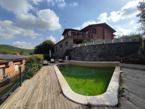 En Begues, en la tranquila zona de Montau, rodeada de naturaleza y con unas preciosas vistas despejadas, encontramos esta magnífica casa con piscina de 553 m² construidos en 2007 sobre una parcela de 912 m², según los datos ofrecidos por el catastro.