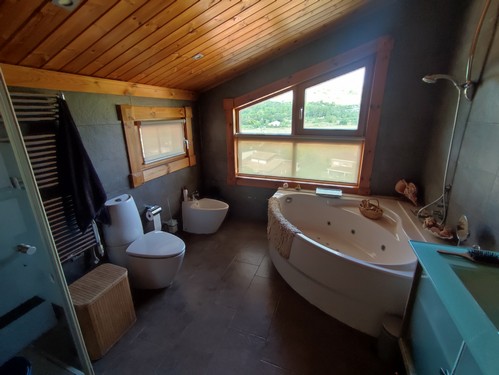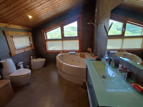 Planta Superior: En esta altura se ubica una segunda vivienda o zona independiente, perfecta para invitados, despacho o incluso apartamento auxiliar, con estancias abiertas, baño completo con jacuzzi y sauna y terraza privada.