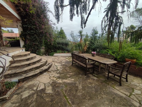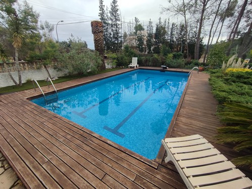 El exterior es uno de los grandes atractivos de la propiedad. La parcela ofrece zonas ajardinadas consolidadas, una piscina privada de 10x5 m con sistema de limpieza automática, varias terrazas donde disfrutar del entorno y una pista de squash profesional con suelo de haya vaporizada, actualmente adaptada como área de práctica de golf. Un espacio perfecto para los amantes del deporte y el ocio al aire libre.