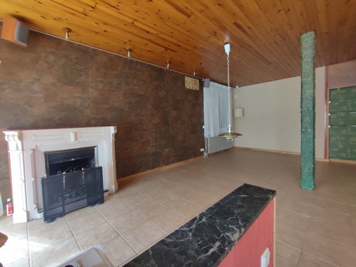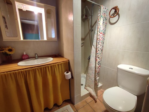 El acceso principal a la vivienda se realiza desde la calle superior, ubicando la entrada en la planta destinada a la zona de día. Al entrar, encontramos un amplio salón-comedor dividido en dos niveles, con chimenea y grandes ventanales que permiten disfrutar de una luz agradable durante gran parte del día. Desde este espacio se accede también a una terraza muy soleada, perfecta para relajarse al aire libre sin salir de casa. Junto al salón encontramos la cocina independiente, amplia y funcional, totalmente equipada y con zona office, un espacio cómodo para el día a día. En esta misma planta se ubica un baño de cortesía que da servicio a las estancias principales.
