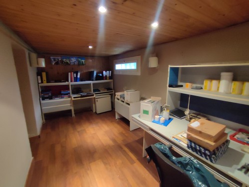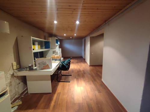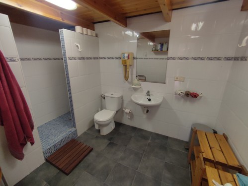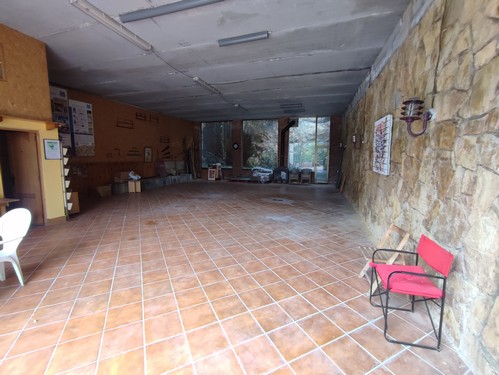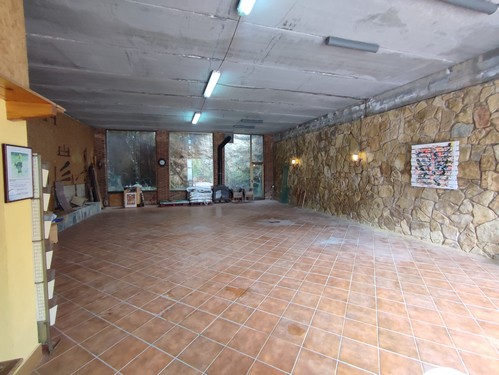En la parte más baja del terreno encontramos un garaje extraordinario de 130 m², totalmente diáfano y con capacidad para seis vehículos, equipado con vestuarios, duchas y lavabo. En esta zona se ubican también el taller, diferentes espacios de almacenaje y tres boxes para caballos, actualmente en desuso.