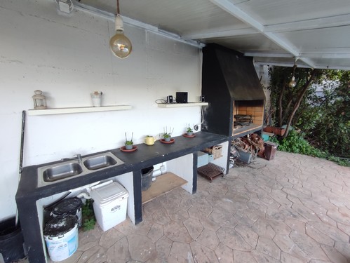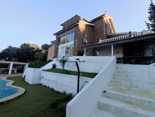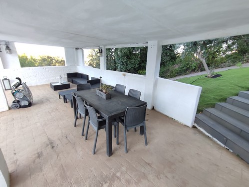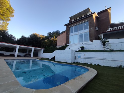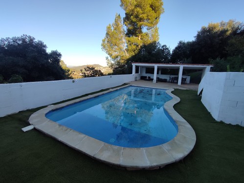 La zona exterior ofrece un amplio espacio destinado al disfrute al aire libre: zona comedor exterior cubierta, barbacoa con habitación prevista para baño pendiente de finalizar, piscina, trastero, sala adicional y un garaje con capacidad para tres vehículos.
