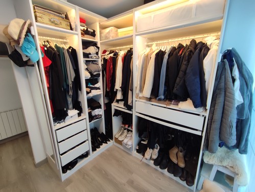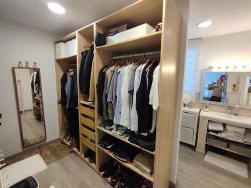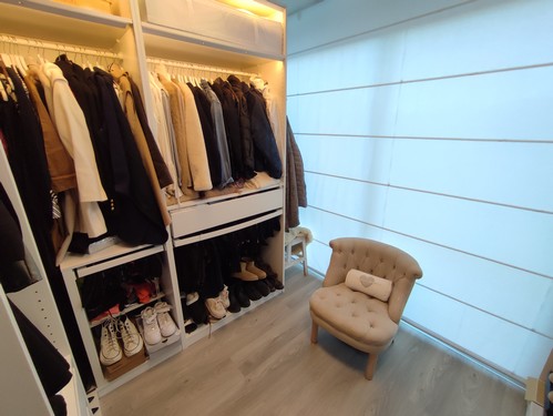 En la planta inferior se ubica la habitación principal, de grandes dimensiones, acompañada por dos vestidores hechos a medida y un baño completo con ducha. Desde este nivel se accede directamente al garaje.