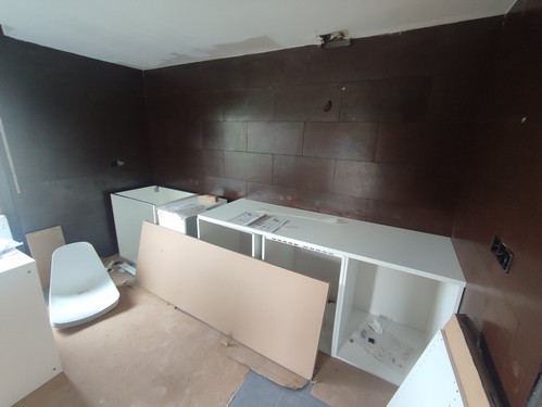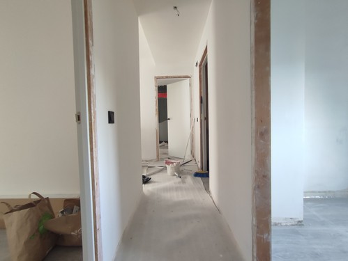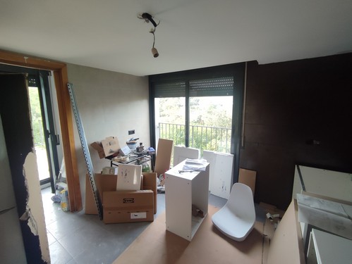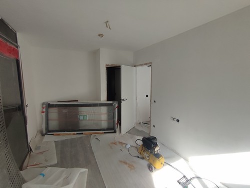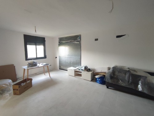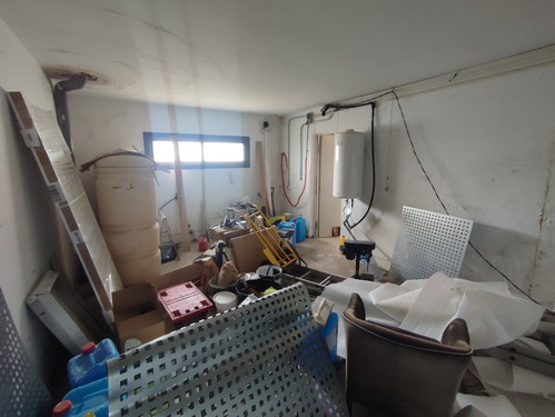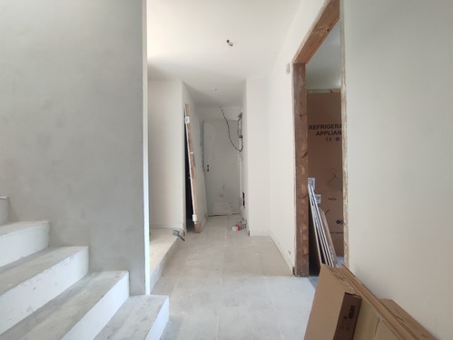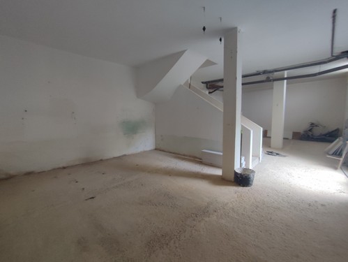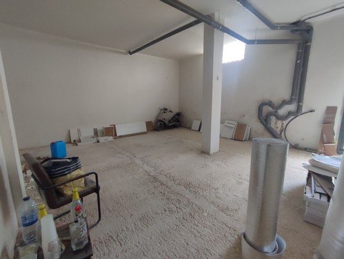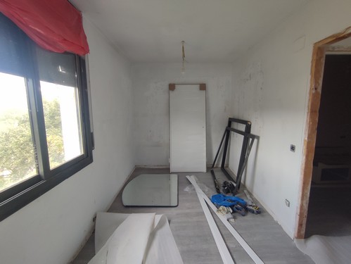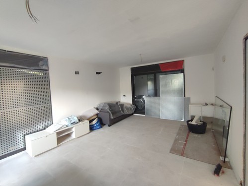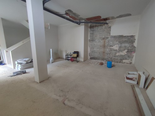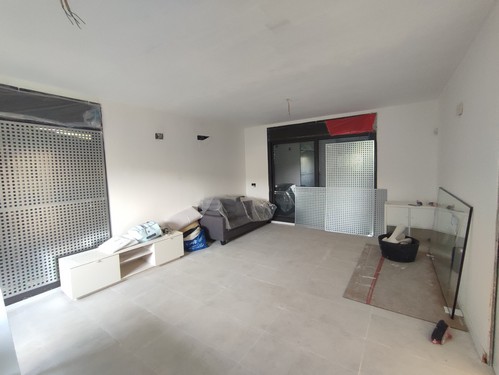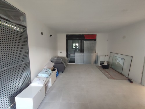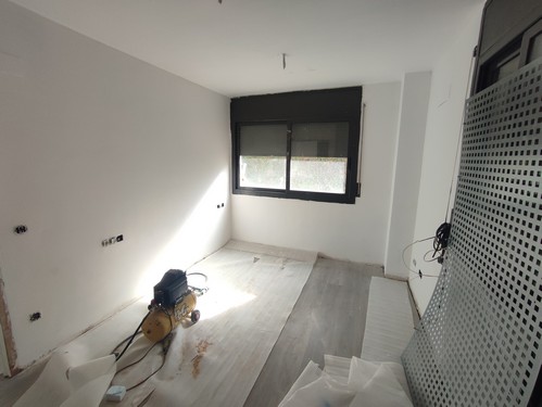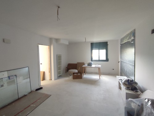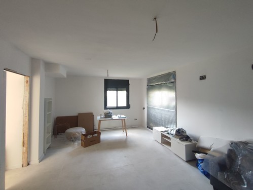 El acceso principal nos lleva a la planta baja, donde encontramos una zona de 72 m² pendiente de redistribución y finalización de obra. Esta planta ofrece espacio suficiente para crear un amplio salón, una cocina abierta o independiente —según el proyecto deseado— y un primer baño, además de disponer de una estancia perfecta para destinar a habitación. En esta misma planta se ubica un aparcamiento cerrado de 24 m², ideal para vehículo y almacenaje, que es precisamente la zona donde la vivienda se adosa al garaje del vecino.
