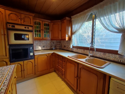 El acceso principal nos sitúa en la planta baja, donde un hall de entrada da paso a un salón-comedor muy luminoso, con chimenea y salida a un balcón amplio desde el que se disfrutan unas vistas totalmente despejadas. Junto al salón encontramos la cocina, cómoda y funcional, con salida directa al patio trasero, una zona muy agradable con árboles frutales. En esta misma planta se ubica un aseo de servicio, perfecto para la zona de día.